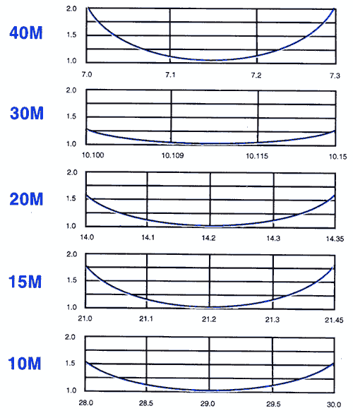 6 Band Vertical HF Fixed Station 10, 15, 20, 30, 40, and 75 or 80 Meters Bandwidth at it's broadest! VSWR 2:1 or better at band edges on